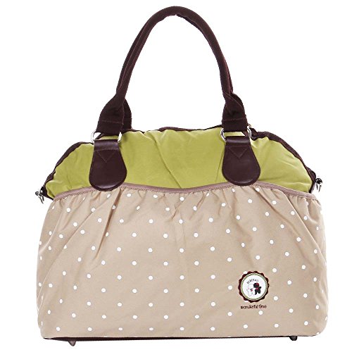 【Ani Mam Kids】シルエット が とってもキュート な トートバッグ マザーズバッグ ショルダータイプ にも 変身 水玉 ドット 柄 カスタマイズ ポケット付 (オリーブ×ベージュ)