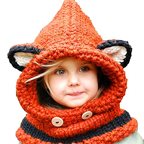 【Ani Mam Kids】キッズ 子供用 ニット 帽子 赤ちゃん ベビー アニマル 耳付き 防寒 マフラー アウター スヌード ネックウォーマー (きつね(オレンジ))