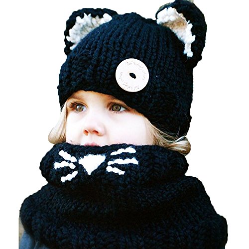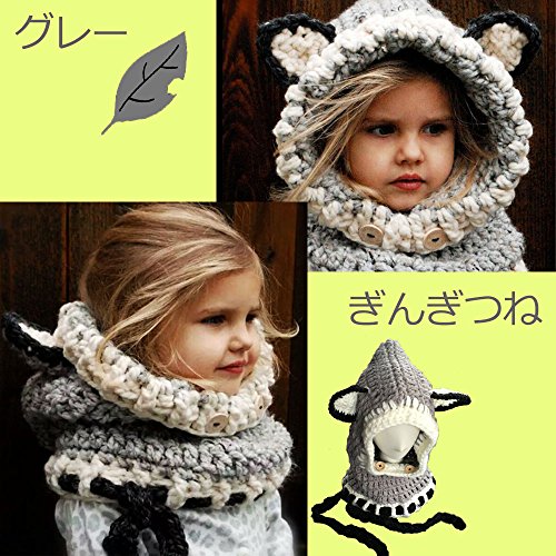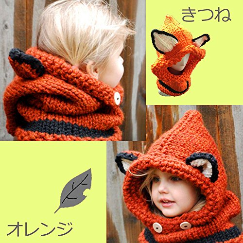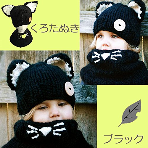 【Ani Mam Kids】キッズ 子供用 ニット 帽子 赤ちゃん ベビー アニマル 耳付き 防寒 マフラー アウター スヌード ネックウォーマー (くろたぬき(ブラック))