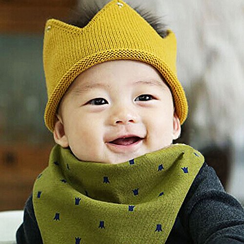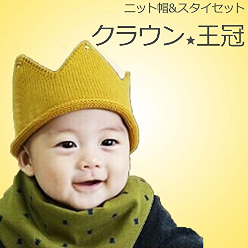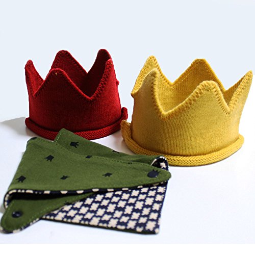 【Ani Mam Kids】かわいい 王冠 クラウン ベビー用 ニット 百日祝い 1歳 記念日 お食い初め 記念 写真撮影 誕生日 バースデー セレモニー 結婚式 お宮参り など イベント に 2個+スタイセット (グリーン)