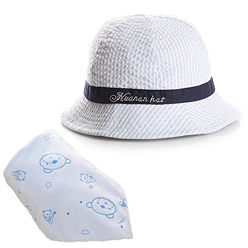 【Ani Mam Kids】ベビー用 帽子 日よけ UVカット 出産祝い バースデー プレゼント 男の子 女の子 可愛い くまさん スタイ ギフトセット (ブルー×ブルー)