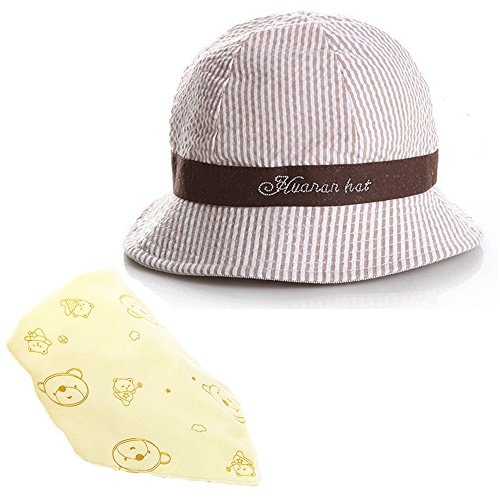 【Ani Mam Kids】ベビー用 帽子 日よけ UVカット 出産祝い バースデー プレゼント 男の子 女の子 可愛い くまさん スタイ ギフトセット (ブラウン×イエロー)