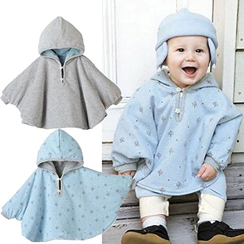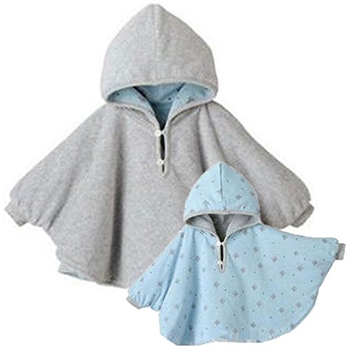 【Ani Mam Kids】リバーシブル フード 付き パーカー 男の子 女の子 兼用 キッズ ベビー 2Way ポンチョ (M(95~100), ブルー×グレー)
