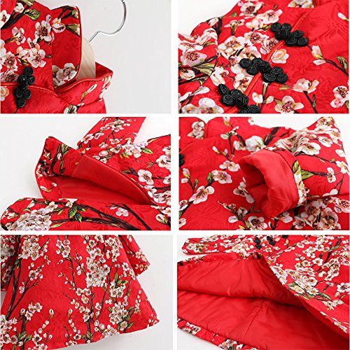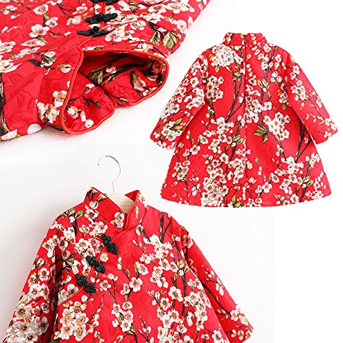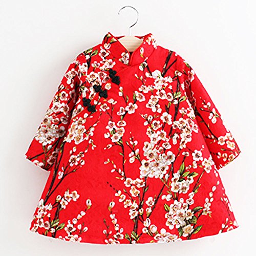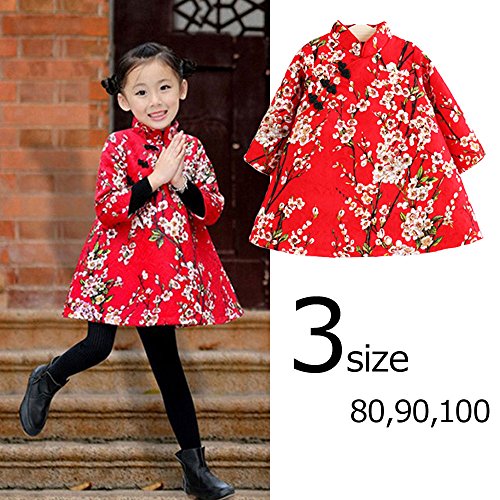 【Ani Mam Kids】女の子 用 チャイナ服 チュニック ワンピース 春 秋 冬 中華服 かわいい お宮参り 七五三 桃の節句 発表会 パーティー お出かけ着 (80cm)