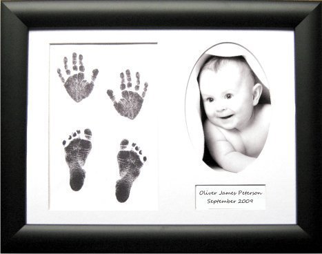 Fabulous Hand and Footprint Kit complete with display frame;The inkless wipe kit to take the prints picks up amazing detail;Inkless wipe is safe to use on newborn skin, these wipes are used in the U.S. hospitals as an identification method for newborn babies!;A truly unique and fabulous baby keepsake item!;Great value kit that will create a priceless keepsake to treasure forever!