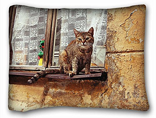 Decorative標準枕ケース動物猫cat kotyara moustached Koshak kytsa 20 " * 26 " One Side 標準 ブラック VBNWO-31384