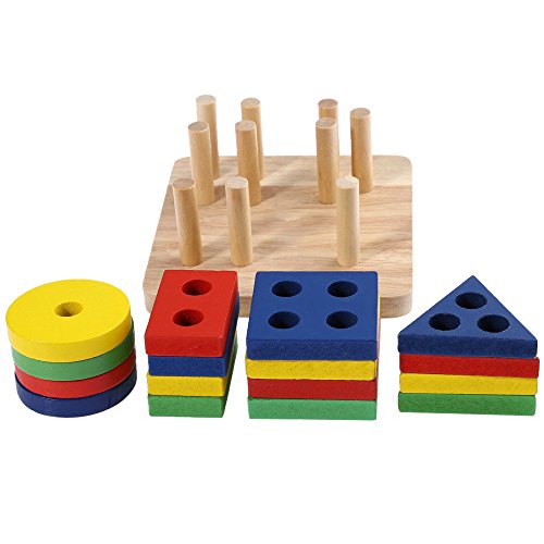 型はめ おもちゃ 積み木 立体パズル 木製 幾何ブロック 形あわせ 棒さし 知育玩具 出産祝い 誕生日のプレゼント 赤ちゃん 幼児 子供教育