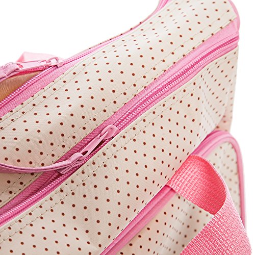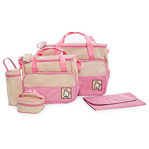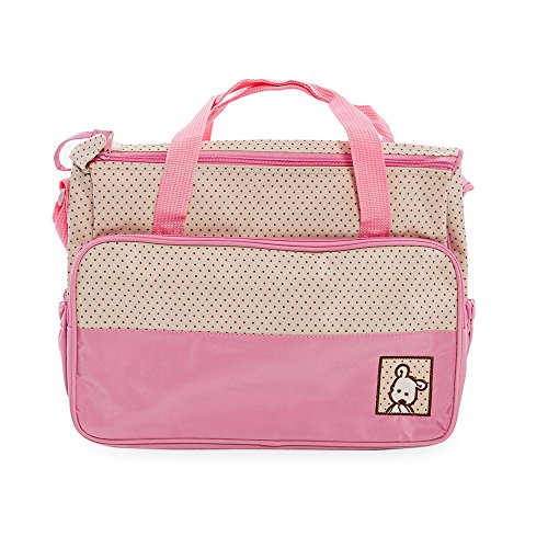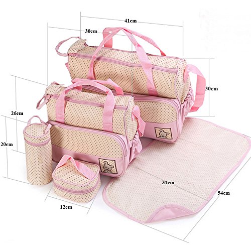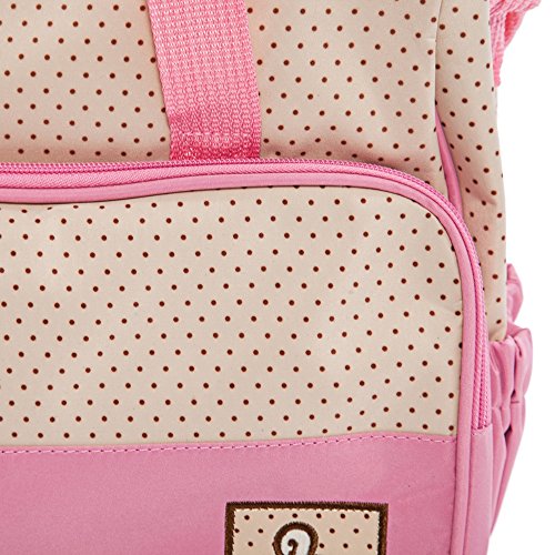 多機能 親子バッグ マザーズ バッグ 5点セット 収納鞄 哺乳瓶袋 弁当袋 おむつパッド 斜め掛け おむつポーチ お出かけ 旅行用 (ピンク)