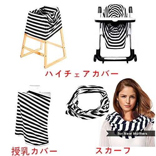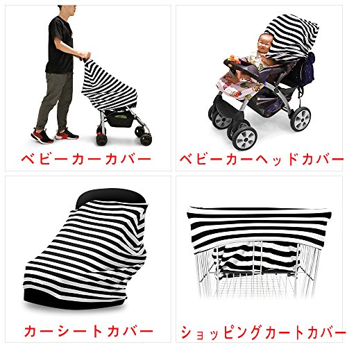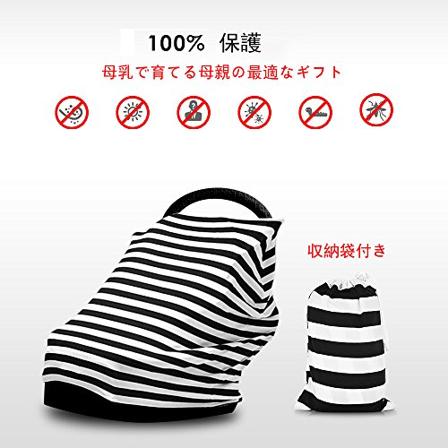 授乳ケープ ベビーカーカバー ショッピングカートカバー レディーススカーフ ポンチョ ストール 360度安心 収納袋付き 7-in-1 多機能 伸縮自在 出産祝い プレゼント 児童保護 (白黒のしま模様)