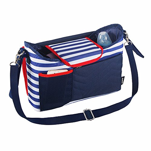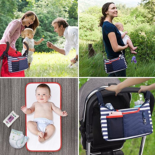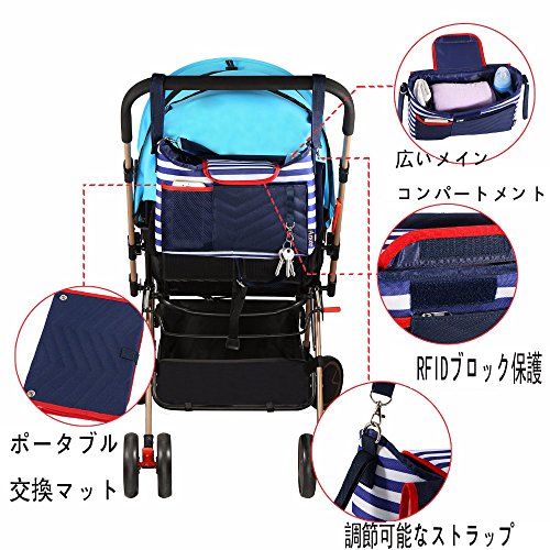 ベビーカー バッグ ママ バッグ ドリンク ボトル ホルダー 折り畳み式 おむつマット付き 大容量 多機能小物入れ 収納ショルダーバッグ (ダークブルー)