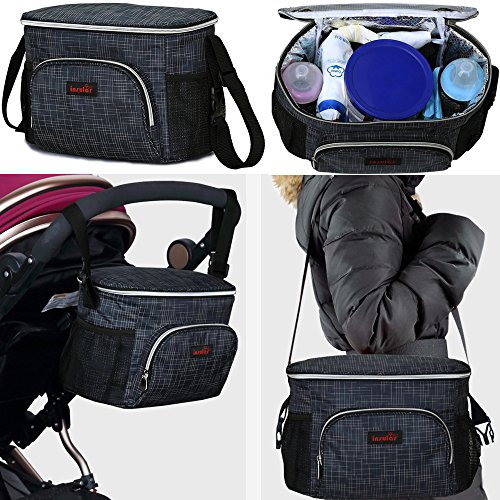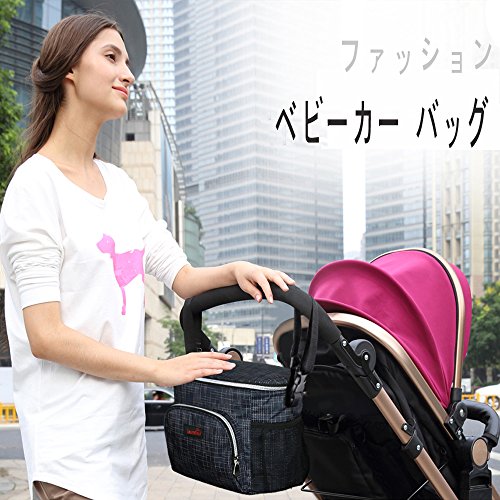 ベビーカー バッグ ショルダーバッグ両用 保温効果 ドリンク ボトル ホルダー 大容量 多機能小物入れ 収納 ママ バッグ 旅行 (ブラック)