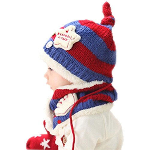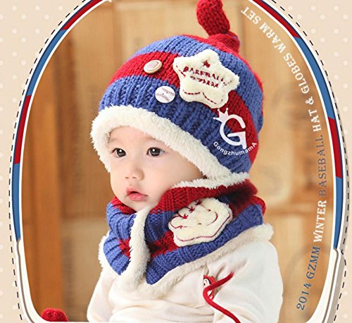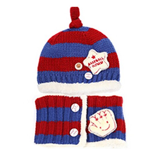 【Anjelly】 ベビー & キッズ 用 ニット帽 & マフラー (ボタン付き ネックウォーマー ) セット ベースボール 選べる6色 (レッド×ネイビー)