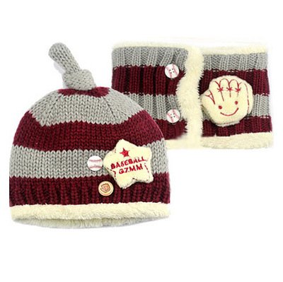 • あたたかいニット帽子とネックウォーマーのセット。グローブ、ボールのデザインがかわいらしいです。