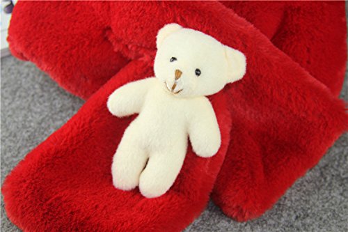 【Anjelly】 ガールズ・キッズ ふわふわ クロス ファー マフラー かわいいワンポイント クマさん (ピンク)