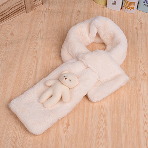 【Anjelly】 ガールズ・キッズ ふわふわ クロス ファー マフラー かわいいワンポイント クマさん (ホワイト)