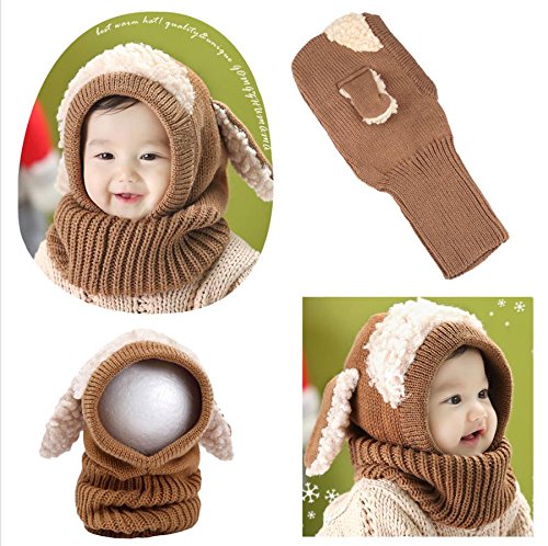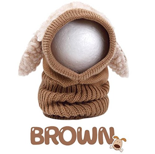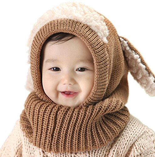 【Anjelly】 ベビー & キッズ 用 うさぎちゃん風 ニット帽 ネックウォーマー 一体型 おまけ付 選べる5色 (ブラウン)