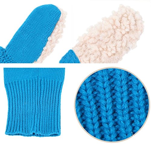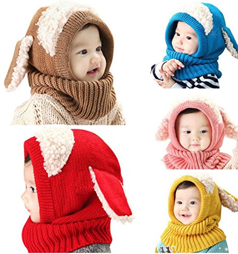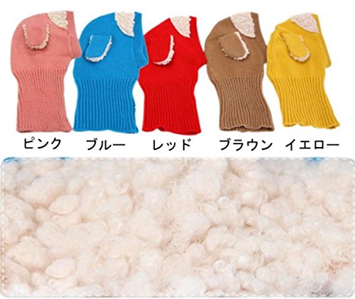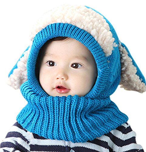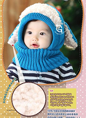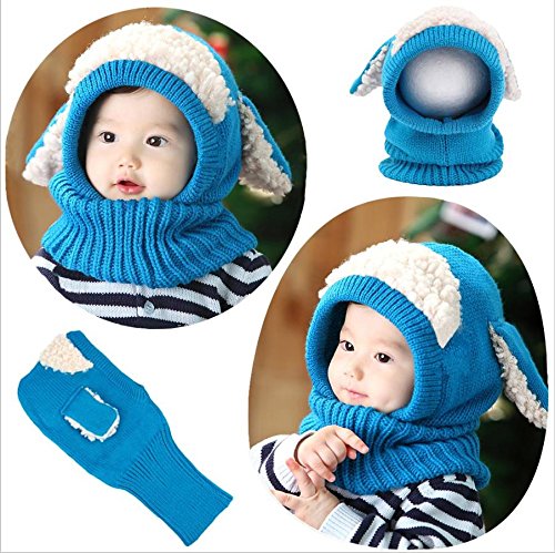 【Anjelly】 ベビー & キッズ 用 うさぎちゃん風 ニット帽 ネックウォーマー 一体型 おまけ付 選べる5色 (ブルー)