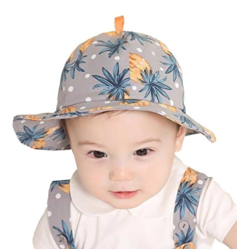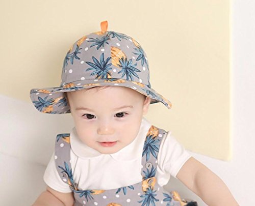 【Anjelly】ベビー キッズ 帽子 幼児用 つば付き パイナップル柄 かわいい ハット 日差し対策 日よけに (グレー)