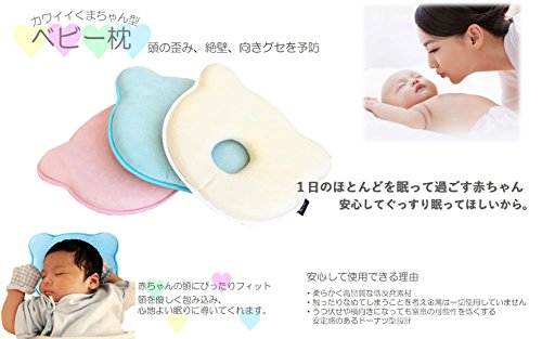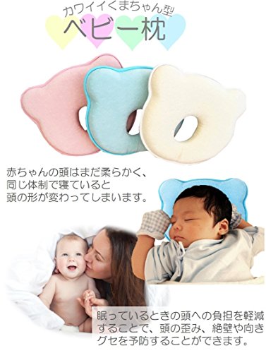 - 1日のほとんどを眠って過ごす赤ちゃんの頭を守るかわいいくまちゃん型のベビー枕です。赤ちゃんの頭はまだ柔らかく、同じ体制で寝ていると頭の形が変わってしまいます。眠っているときの頭への負担を軽減し、頭の歪み、絶壁や向きグセを予防することができます。