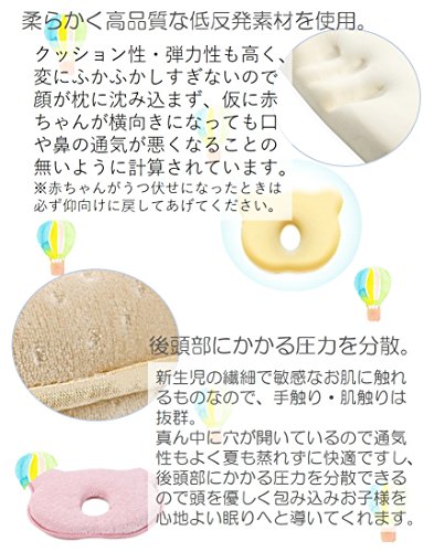 - 新生児の繊細で敏感なお肌に触れるものなので、手触り・肌触りは抜群。真ん中に穴が開いているので通気性もよく夏も蒸れずに快適ですし、後頭部にかかる圧力を分散できるので、頭を優しく包み込み寝心地が良く、お子様を心地よい眠りに導いてくれます。また頭の片側だけがぺったんこになったり、摩擦で後頭部の髪の毛だけ薄くなってしまうことも予防できます。