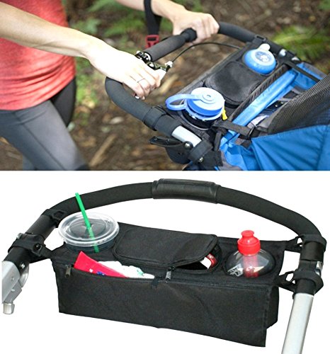 - ベビーカーに取り付けて、飲み物やお財布、携帯電話、カメラ等を収納する、収納付きのドリンクホルダーです。