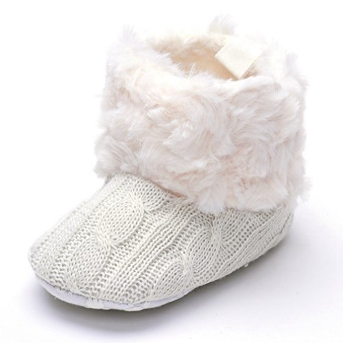 - Annnowl Baby Girls Knit Soft Fur Winter Warm Snow Boots Crib Shoes (6-12 Months, White)