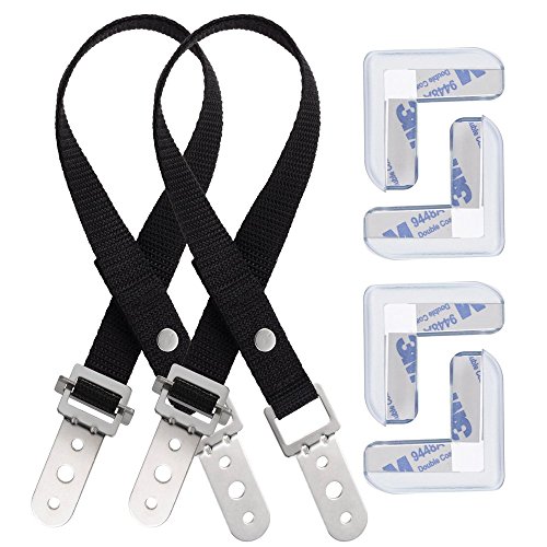 Anpro® TV and Furniture Anti-Tip Straps and 4 Packs Corner Bumpers with All Metal Parts Mounting Hardware. Keep Children Safe, Protect From Injury Around the House [並行輸入品]