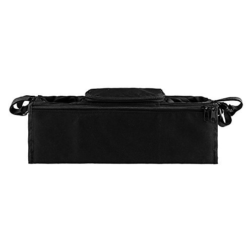 Usage Versatile - Compatible with many different strollers, collapsible frame folds with stroller;Convenient Holders&Pockets- The two deep and well insulated drink holders designed to prevent spills are perfect for carrying 1-2 bottles. The zippered pocket holds the valuables;Easy installation - Four straps attach the organiser to the stroller handle firmly;Non-fading Polyester - High quality polyster materials;Made for busy parents- It can keep all your essentials safe and efficiently stored while you're strolling