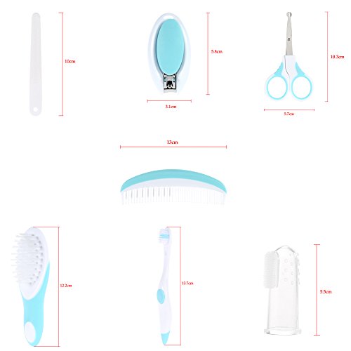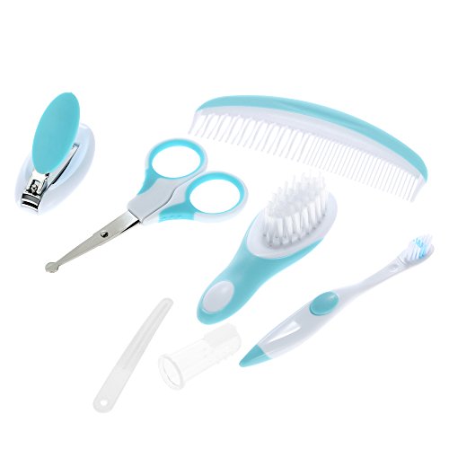Anself 7PCS 赤ちゃんグルーミングセット ネイルファイル フィンガー 歯ブラシ ラウンドヘッド はさみ ネイルクリッパー ヘアブラシ くし 収納袋付き