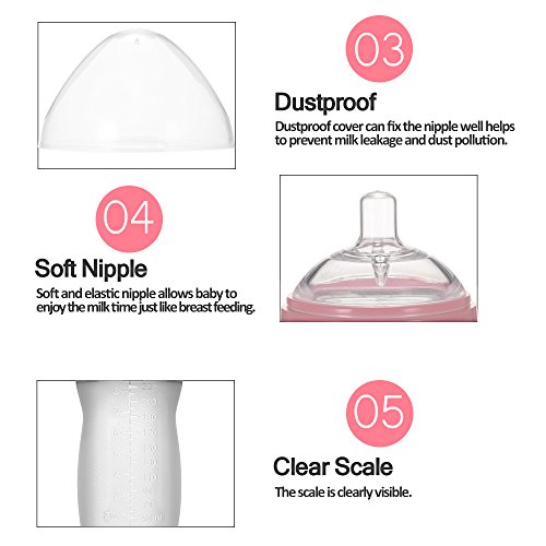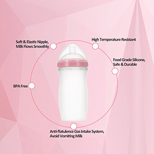 • 食品グレードのシリコーン材料製で、無毒で安全です。 哺乳瓶のワイドネックデザインにより、お手入れが簡単です。
