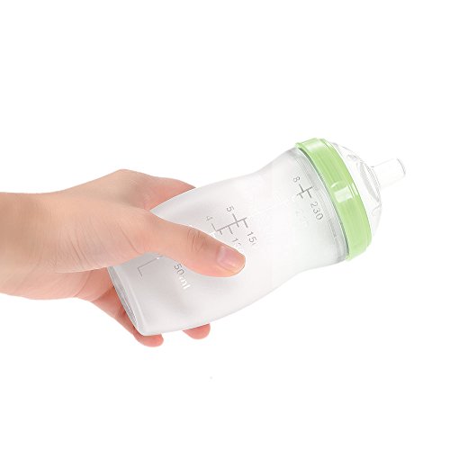 - 柔らかくて弾力のある乳首、牛乳がスムーズに流れ、赤ちゃんは簡単に吸うことができます。 230mlの容量は家庭やショッピングでの使用に適します。 スケールははっきりと見えます。