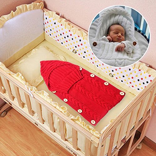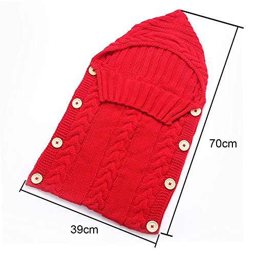 それは非常にかわいいベビースリーピングバッグ、毛糸、シックなニットで、ボタンの飾り付き、フード付きデザイン、非常に、暖かく実用的です。新生児女の子、男の子に完璧 – --も暖か快適ですを取得する際に心配する必要はあなたの赤ちゃんと一緒に洗濯機で水洗いこの愛らしいスリーピングバッグ。