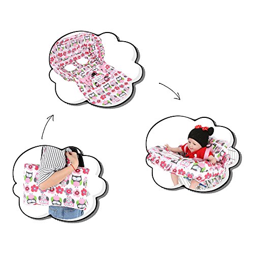 - ほとんどのカートに装着でき、安全に買い物をするときに使いやすいです。 カバーは1分以内に持ち運びが容易なポーチに折り畳むことができ、ポーチがベビーシートクッションになってカートに展開できます。