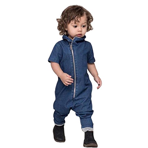 赤ちゃんのロンパース、anshinto Little Boys服ロンパース半袖ジッパーデニムジャンプスーツ服装 カラー: ブラック