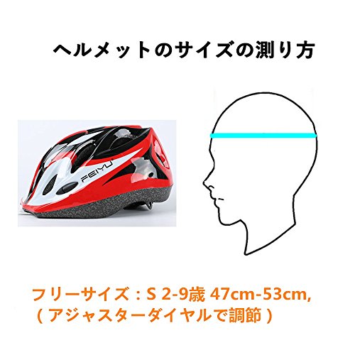 フリーサイズ:S 2-9歳 47cm-53cm,(アジャスターダイヤルで調節)。