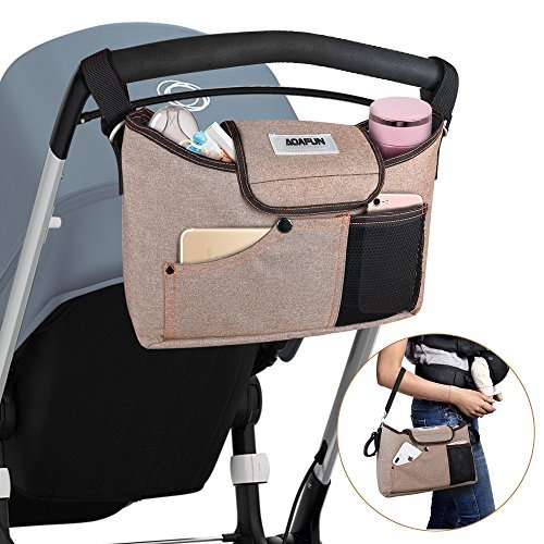 aoafun grab-and-goベビーカーオーガナイザー、取り外し可能なメッシュバッグと取り外し可能なおむつ替えマット、、ユニバーサルフィット。