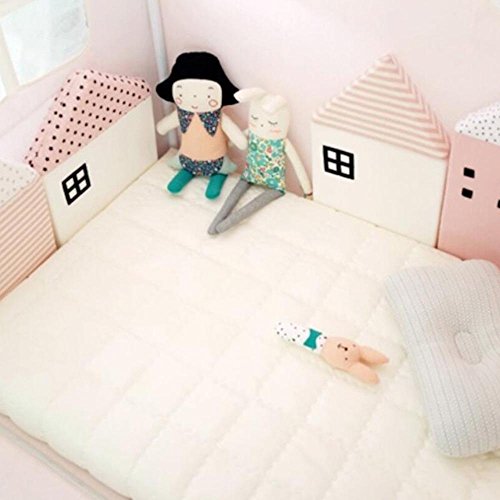 AOLVO通気性ベビーベッドバンパー、ベビーベッドレールバンパーNurseryダストからフェンスCradle安全100 %コットン家形状ベビーベッドバンパーガードのインテリア新生児幼児ギフト ピンク 7025779997996