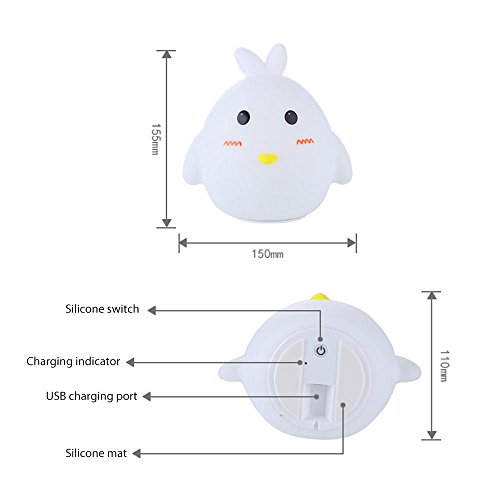 AOLVO Chick夜ライト、保育園用ナイトライト子供、機密タップコントロールシリコンBaby Nurseryランプ、LEDマルチカラーポータブルUSB充電式ベビー赤ちゃんの子の夜ライト