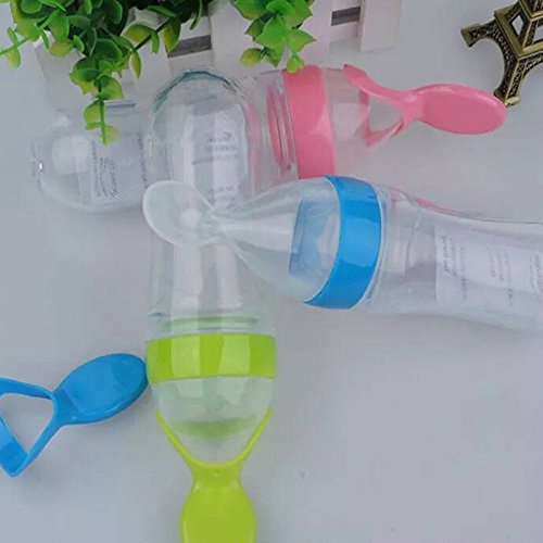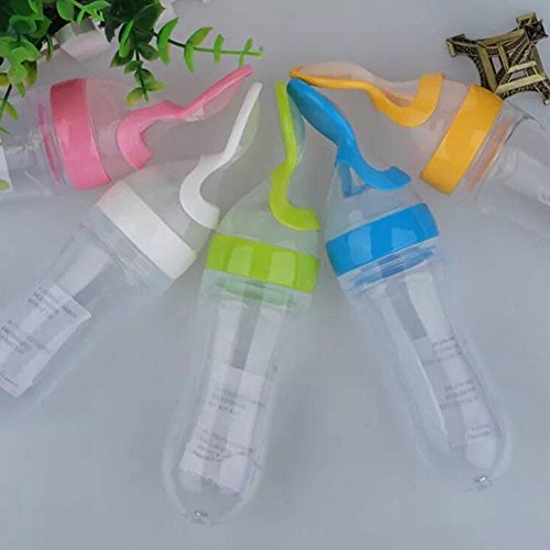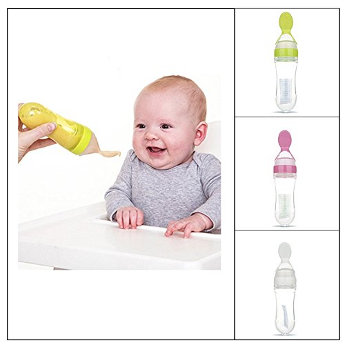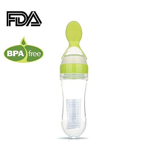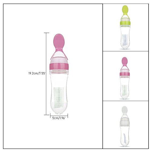 AOLVO 90 mlスプーン付きのシリコンベビーボトルフィーダー、人間工学的な形を簡単にモミして、ダウンが、最後に噛み、ミルクにも最適、および数式)が表示されます。