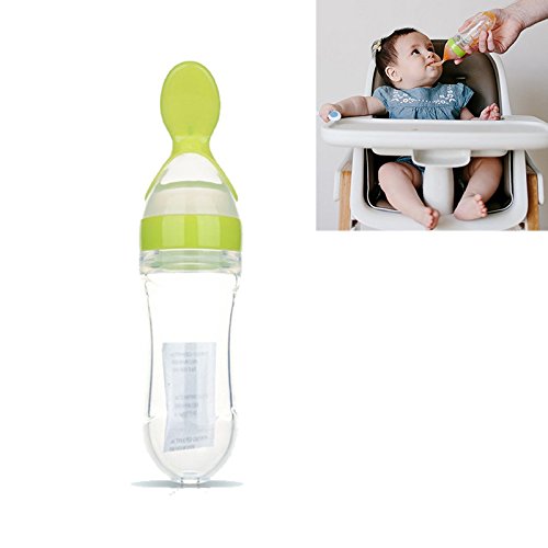 AOLVOシリコンBaby Food分配スプーン、SqueezingシリコンFeeding Spoon Rice Cereal Feeding Bottle幼児新生児の幼児用Food Supplement withソフトヘッドBPAフリー90 ml グリーン 7025779829426