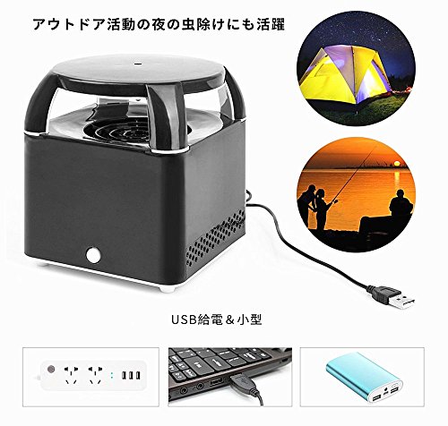 蚊取り器 蚊ランプ UV光源吸引式捕虫器 USB給電式 超静音 省エネー 携帯便利 静音 化学薬品不使用 寝室 リビング 居間 台所 アウトドア用 携帯便利 吸引式捕虫器 (黒い四角)