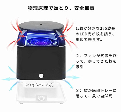 - 害虫の好む光の365波長で虫を誘い、電動ファンの強気流で引き寄せられてきた蚊を急速吸引し、瞬時に蚊をグングンと吸い込み、下の受け皿で自然風化死滅させます。蚊の天性を把握の上、設計された電子コバエ捕虫器で、虫よけ効果抜群、うろうろ飛んでる虫を綺麗に取れる電気殺虫ライト、USB!さらに7Wの殺虫専用蛍光管を内蔵してパワーアップ、従来品より有効範囲が広がりました。夏場の蚊よけで悩んでる方にオススメの蚊対策グッズ、室内外兼用!