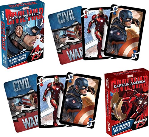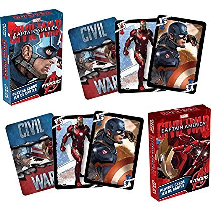 This Limited Edition 2 deck playing card set contains 52 different images and commemorates the blockbuster movie, Captain America Civil War.