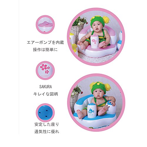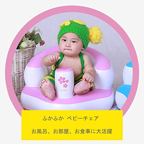 Aregaga ふかふかベビーチェア バスチェア ヘッドレスト付き 幼児用 椅子 ポンプアップ (ピンク)