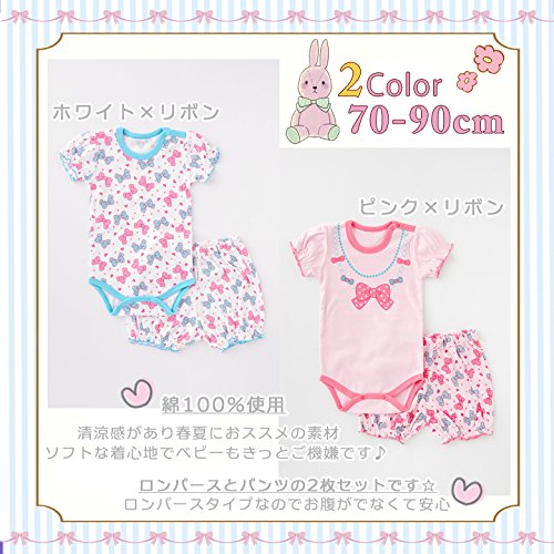 (アリサナ) arisanaベビー 肌着 半袖グレコ+パンツの2点セット 女の子 90cm ピンク×リボン