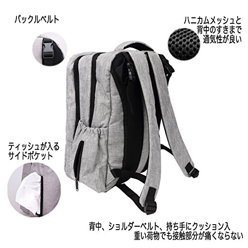 - ◯ 防水加工が施された傷に強いポリエステル ◯ 背中に当たる部分・肩に当たる部分 が厚いクッション素材のパッドになっています。背中に接する面は、中央部分に空間を設け、ハニカムメッシュで通気性が良くなるようになっています。ベビーカーに取り付けるためのバックルベルト付きで、身体に負担をかけずに楽に移動したり、荷物も取り出したりしやすく、赤ちゃんとのお出かけが楽になります。