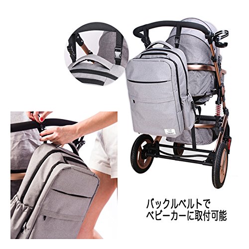 - ◯ 保温保冷用哺乳瓶ケースは、独立しています。リュックのベルト付きバックルに留めて使用することも可能です。◎一般的なリュックは、ベビーカーにかけにくいですが、このリュックはリュックや取っ手にかけ外しのしやすいバックルベルト付きで、両側をバランス良く留めて使えるようになっています。 片方の取っ手にかけてしまうと、重心が片寄ってベビーカーが転倒してしまう心配がありますが、ベビーカーのハンドルやフックに引っ掛けることができるのでお母さんも楽ちんです。【!!ご注意ください!!】重すぎるリュックをベビーカーに掛けるときは、後ろに倒れな以下どうか、十分に確認をしてください。怪我の原因になります。