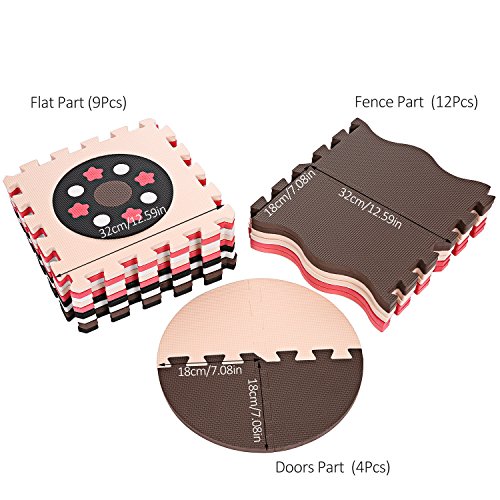 - フェンス最大1 / 5 "遊びマットフラットマット:フラットサイズ47 X 47 1 / 3インチx 4t4フィートエリアが搭載されているため、フェンス用最大サイズ: 91.4 cm ( 36インチX 36インチ( 106.68 cm x 3.5 FT領域)を参照してください。コンポーネントから構成されています。9再生タイルマット+ 12タイルフェンスマット+ 4ゲートタイルマット