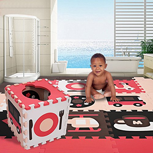 Kids Playマットベビー非毒性Extra Thick Foam Mat withゲートフェンス25-piece レッド **AMM005048_R