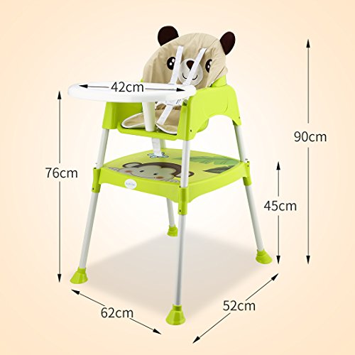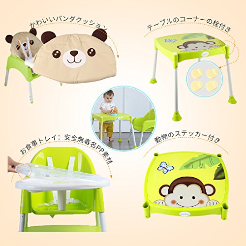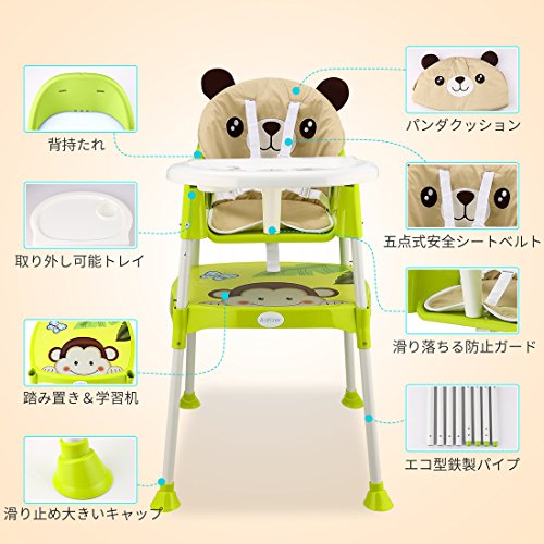 Arshiner 赤ちゃん用 多機能 ハイチェア 子供 お食事椅子 学習机 4wayベビーチェア 6ヶ月から6才まで お食事 おやつ 離乳食 テーブルチャア 組立 5点式安全ベルト 脱出防止 (自然緑)